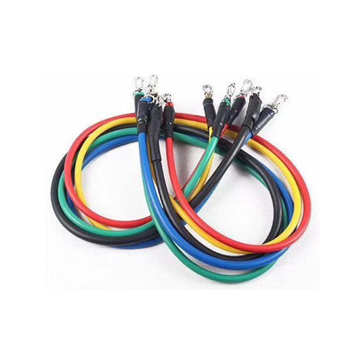 - What you get: 5 exercise tube bands with color-coded resistance levels; 1 door anchor; 2 ankle straps; 2 Extensions straps; 1 portable travel carry bag; and an instruction guide with exercises.