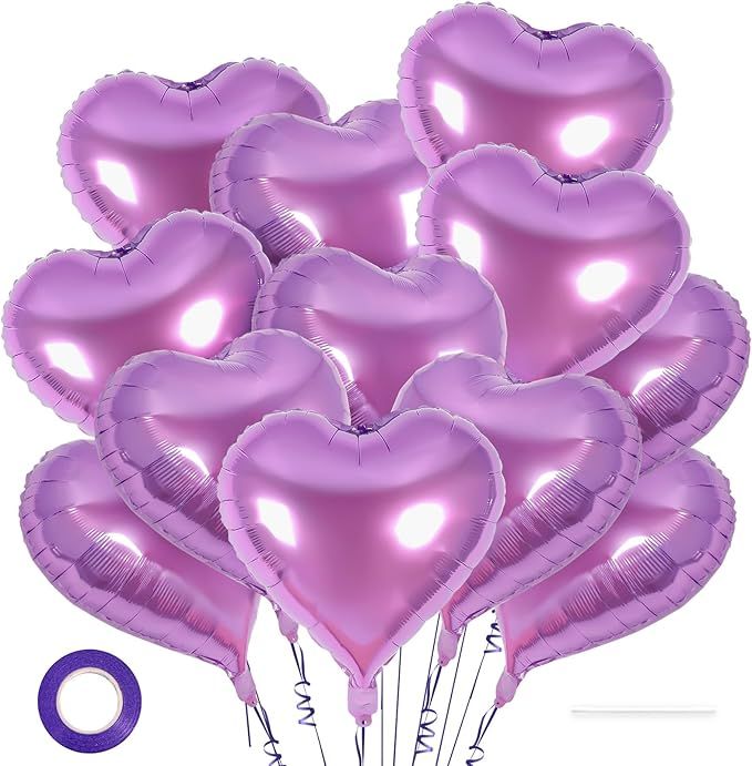 12 Pcs Heart Balloons,18 inch Heart Shape Foil Balloons Love Balloon Valentine Balloon for Birthday Party Wedding Engagement Party Baby Shower Valentine Day Decorations (lipurple)