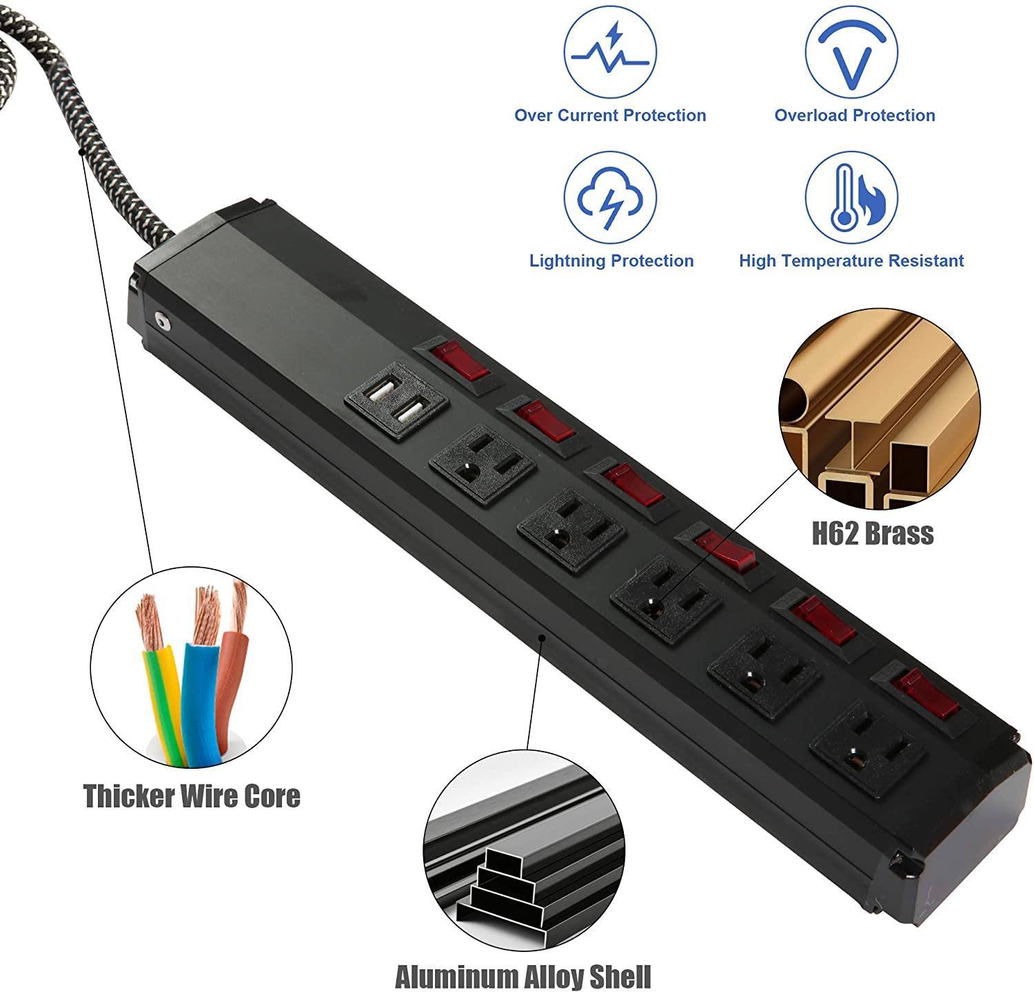 5 AC outlets and 2 USB ports with 6 power switches, meet your needs for electrical charging in life and work.