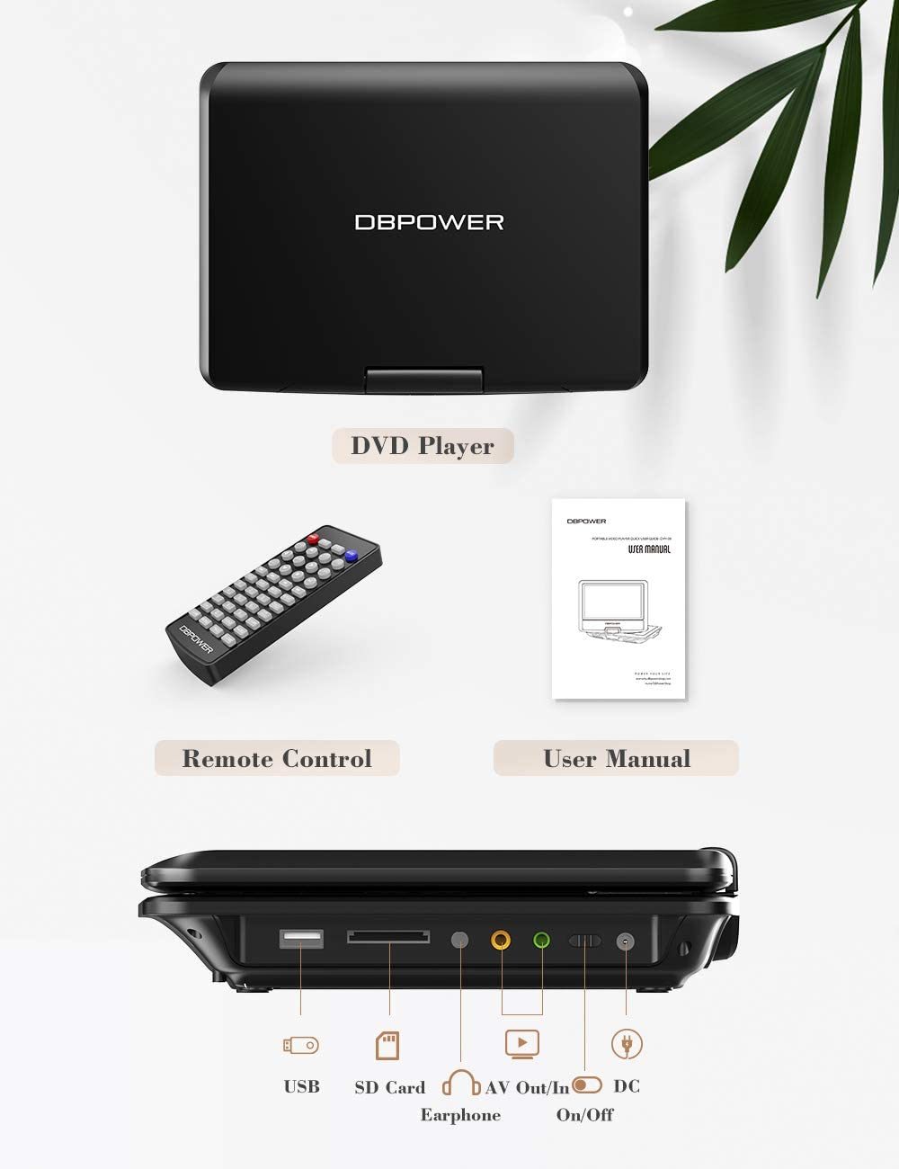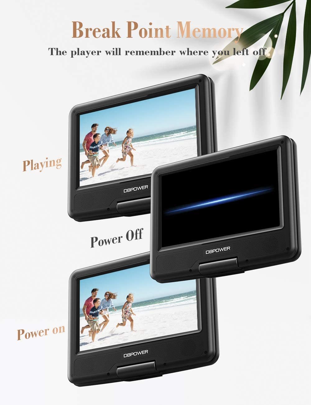 LAST MEMORY & REMOTE CONTROL: One more feature you need most is here. DBPOWER runs on a universal operating system via remote control. Break-point memory function makes your portable DVD player able to pick you up from where you left last time