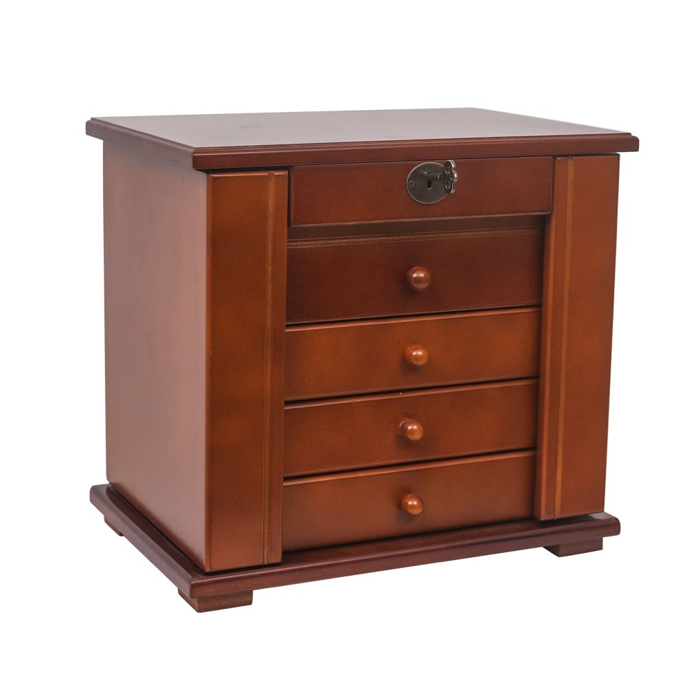 Handcrafted Wooden Jewelry Box Organizer Wood 5 Layers Case with 4 Drawers Brown