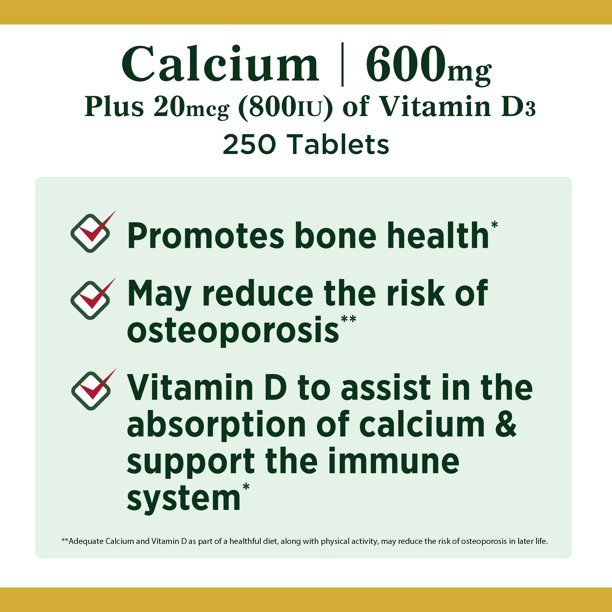 Nature's Bounty Calcium Is The Primary Mineral Responsible For Strong; Healthy Bones. These Tablets Are Enhanced With Vitamin D; Which Assists With Calcium Absorption And Immune Support.
