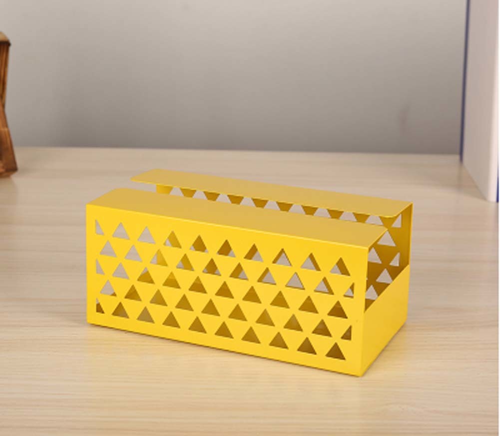 Tinplate Tissue Holder Box Geometric Hollow Facial Napkin Tissue Box Cover - Yellow